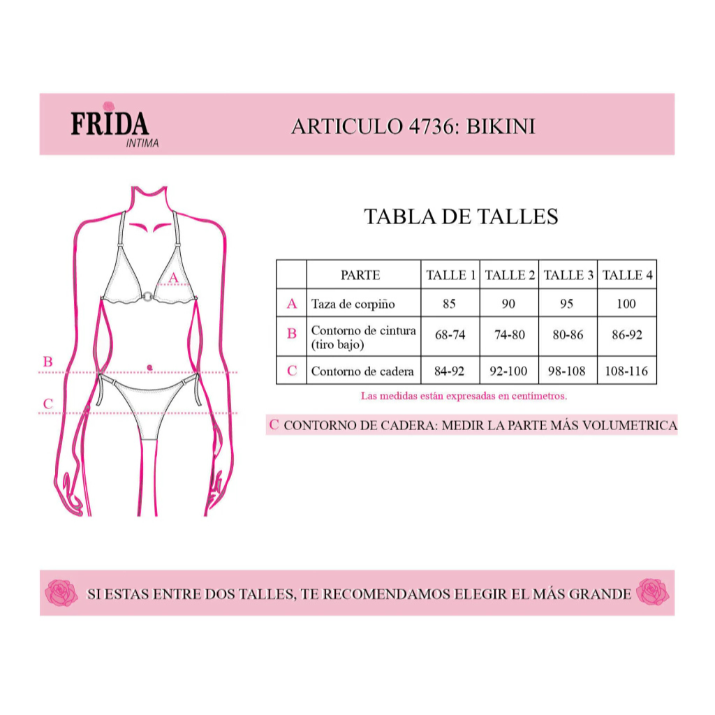 Talles y equivalencias aproximadas : 1 = 85 de corpiño , 2 = 90 de corpiño, 3 = 95 de corpiño, 4 = 100 de corpiño.